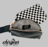 Introducing our Checkered Dual Pouch Wristlet with Gold Accents—a perfect fusion of playful style and elegant sophistication. Featuring a trendy checkered pattern in bold colors, this wristlet is designed to turn heads. The dual pouch design provides smart organization for your essentials, allowing you to keep your ChapStick, cards, and cash neatly separated.