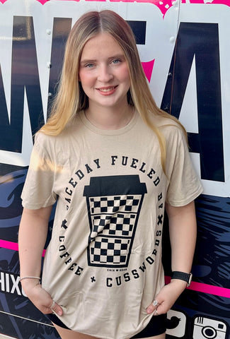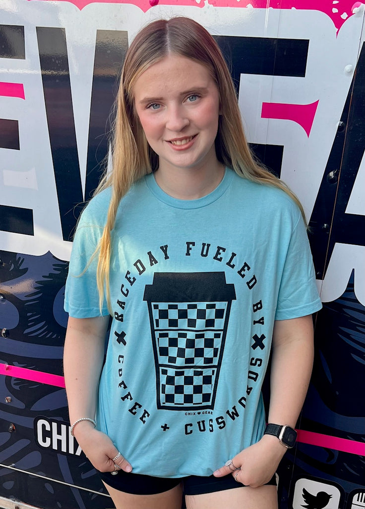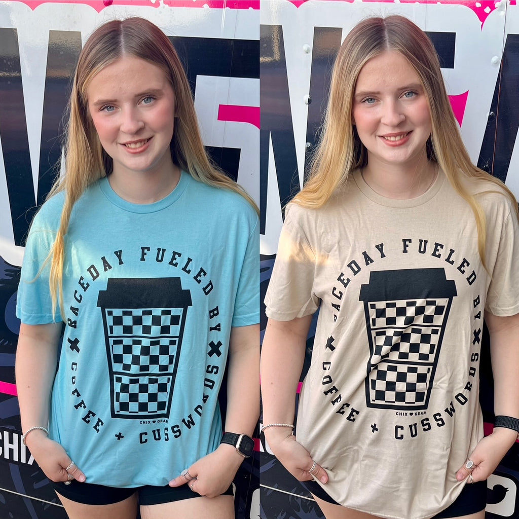 How many of us are fueled by coffee and cusswords?  This super soft tee looks great for the track or just out and about.