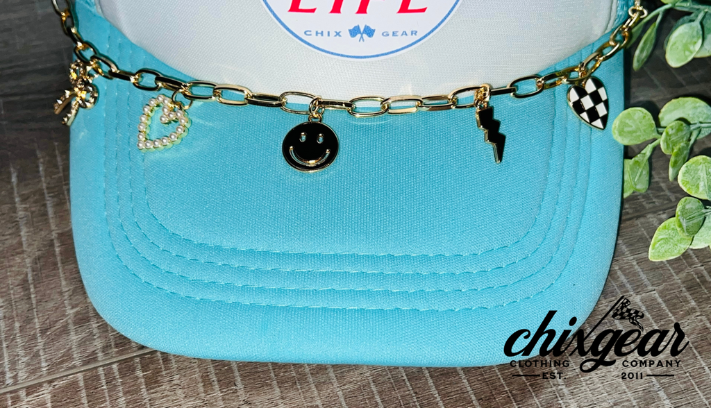 Add a little golden magic to your ball cap!This playful hat charm features a sleek gold base adorned with a mix of fun, eye-catching charms that sway with every step.